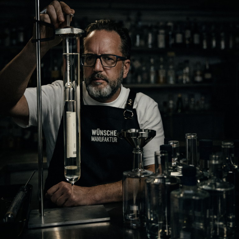 Ansatz, Destillation, Abtrennung, Reifung, Abfüllung – alles in kleinen Chargen.